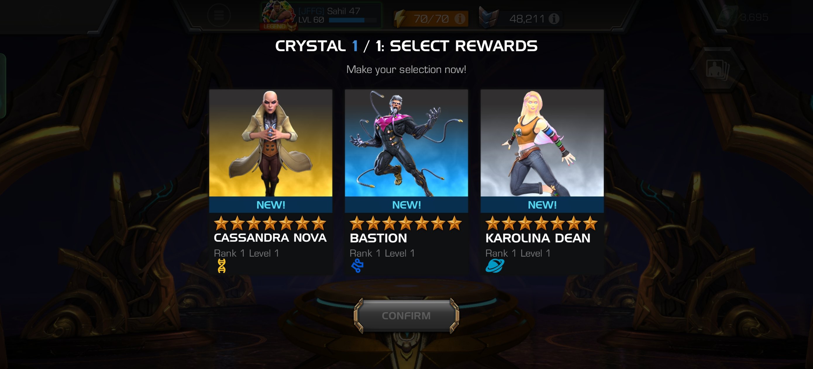 Depends on what you need in your roster as either Karolina or Bastion are great. Personally I’d go Karolina. She can handle a lot of fights and she’s really fun to play.