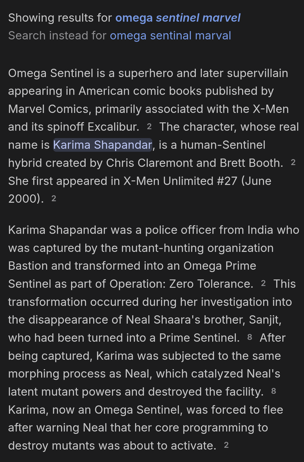 Well she's more of a cyborg, she was once known as Karina Shapindar, an Indian mutant before becoming a sentinel