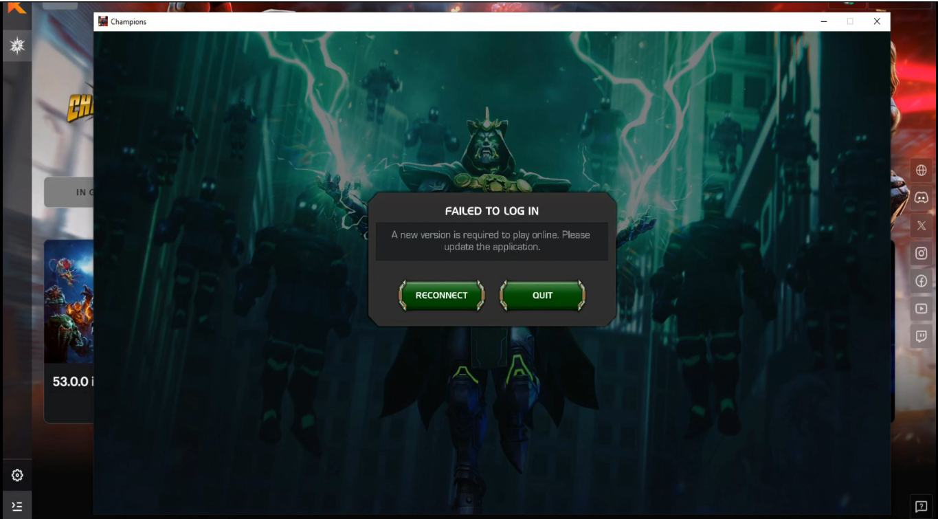 After the latest update for Marvel Contest of Champions on PC, I am stuck in an endless update loop. Every time I launch the game, it prompts me to download and install a new update. While the download appears to complete normally, when the game restarts, I am met with the same "update required" message, and the process repeats. This prevents me from playing the game at all. I have already tried common troubleshooting steps such as restarting my PC and reinstalling the game, but the issue persists.
