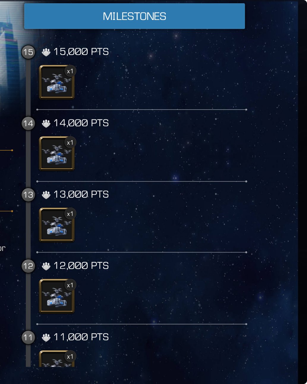 Unless I’m miscalculating, we need 3000 points from the regular missions to get an elite mission—each week.