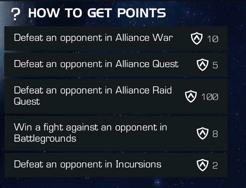 If you're in an alliance of 30 people, that equates to 100 points per member per week.