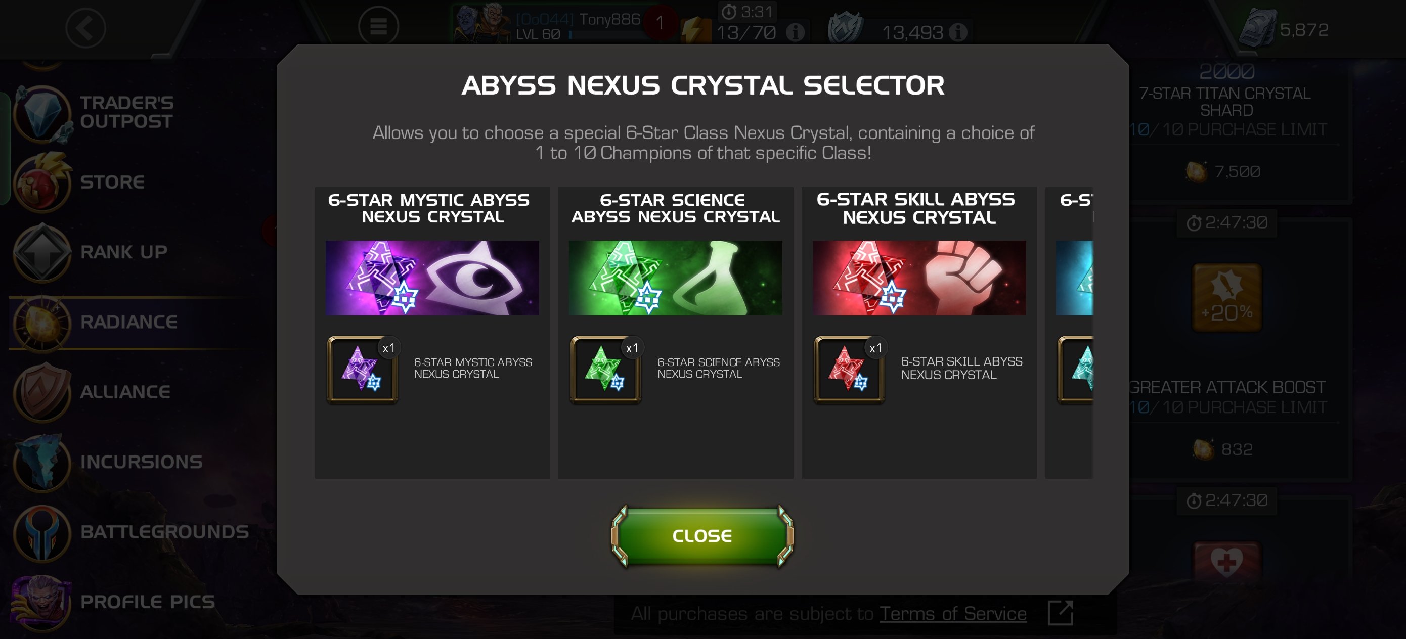 I don't have any good mystic champ and i wanted to pull doctor doom or enchantress from radiance store abyss crystal is it good idea to buy it ?