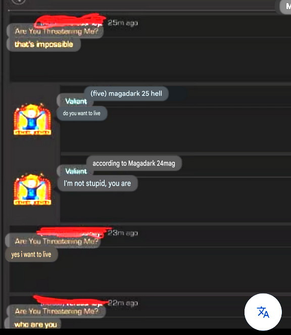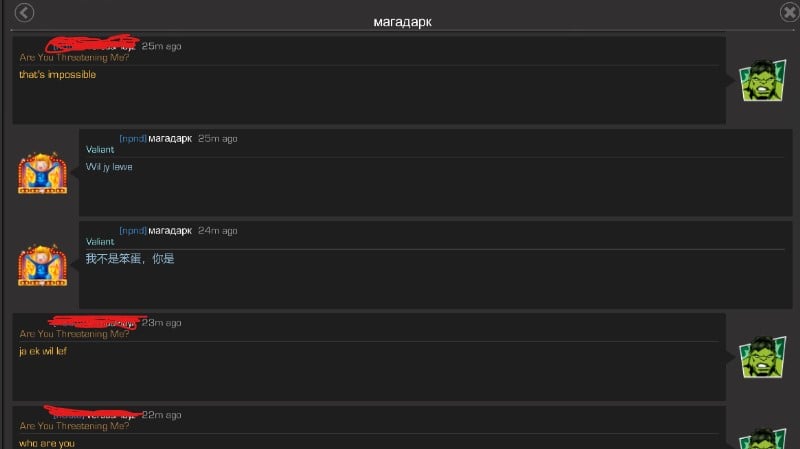 Crazy part if dude's name appears to be in Russian, makes an initial threat in Afrikaans and follows up in Chinese.