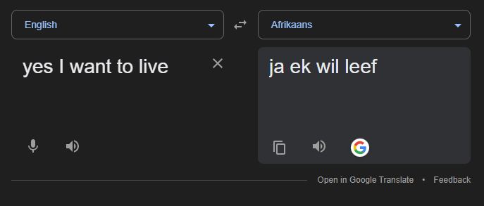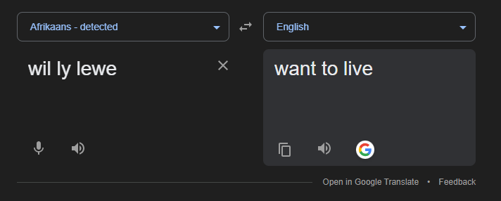 "wil jy lewe?" = do you want to live?