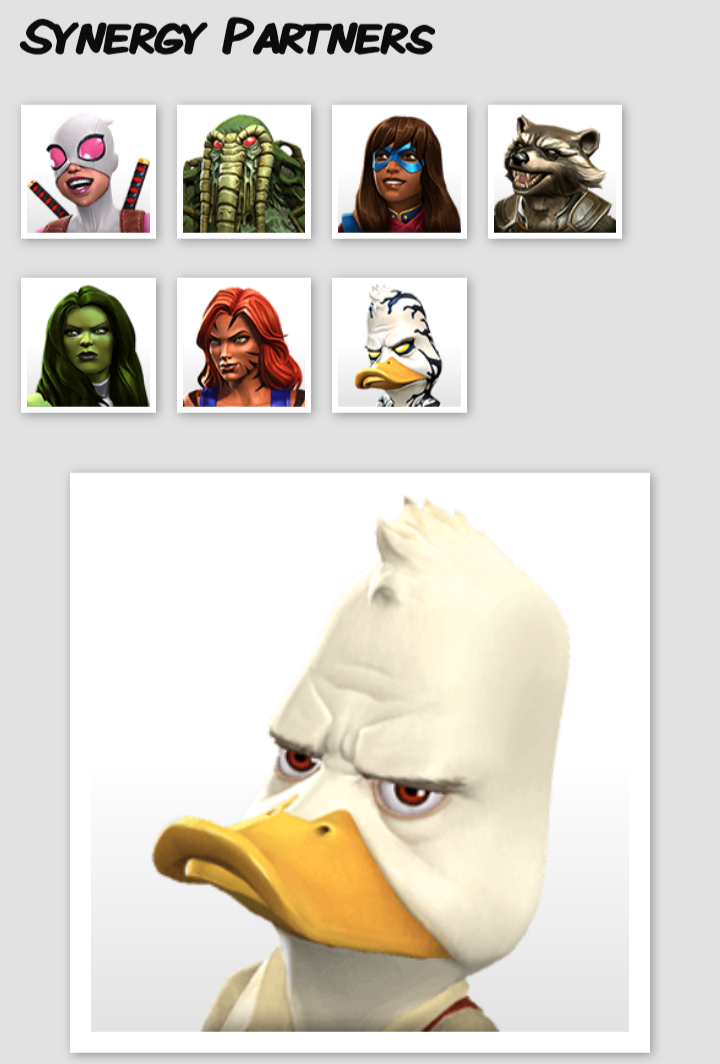Howard the Duck is a loved/hated champ, i have him as 6 stars, and maybe tried to rank for BG, but I choosed M.O.D.O.K. instead... And was a great choice Mwahaha