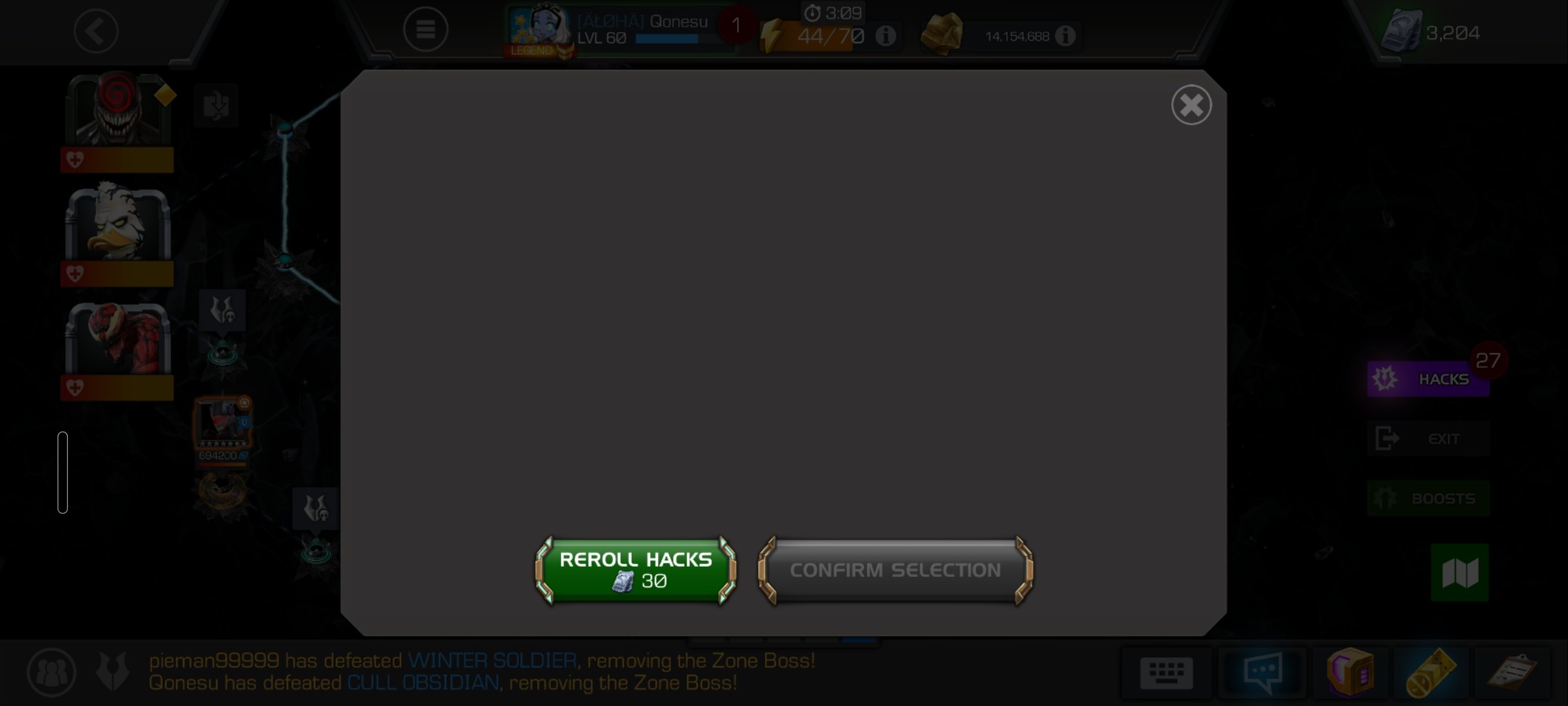 I was doing duo incursions and collected all the hacks for Steve, but unfortunately there was another hack selector and because I have them all I can't continue forward no matter what I do.