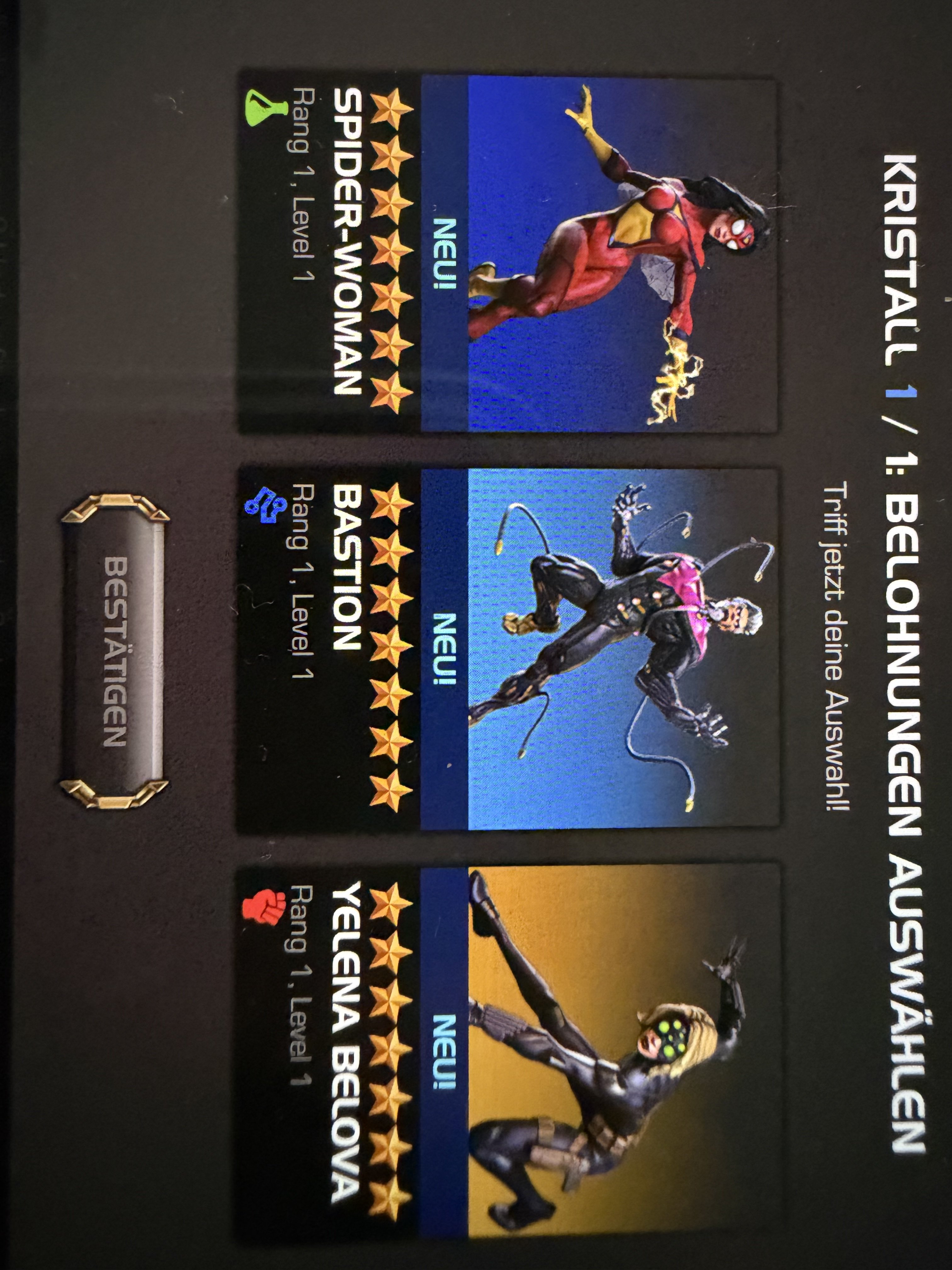 Spider-Woman isn’t actually an option for me, since I already have Photon (Science) and Spider-Man Morales, so I don’t need another Science champ right now.