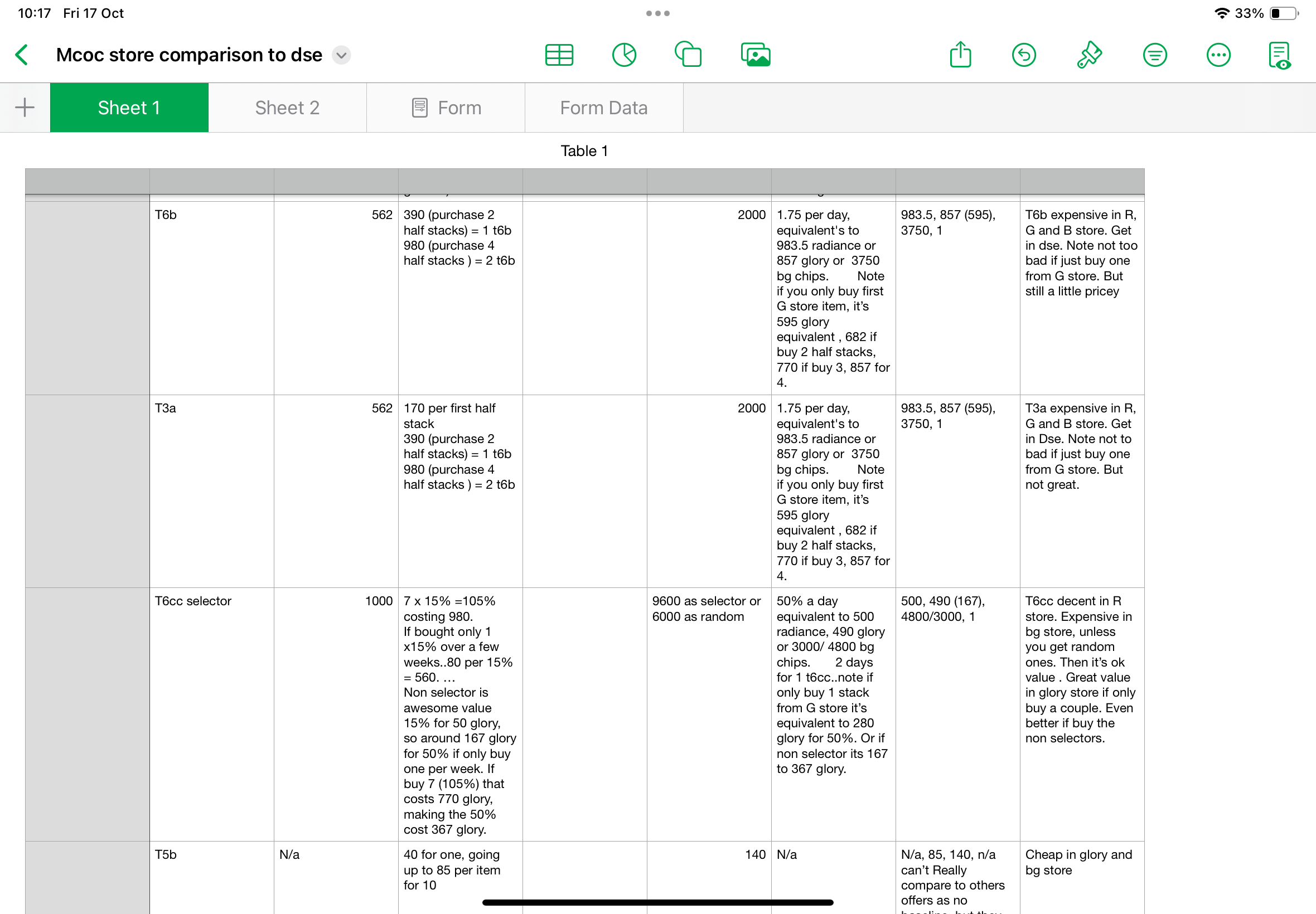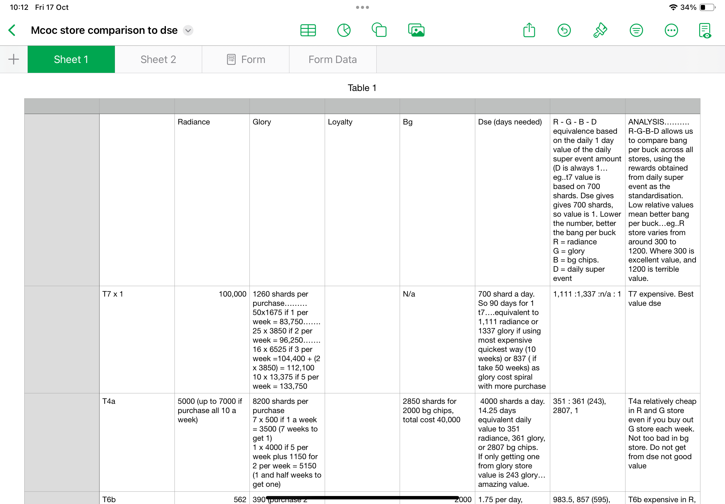 I used the daily super as the standardisation, essentially like my example, so what would happen if I wanted for example, t6cc or t6b or t3a or t4a -They are in the first reward selector of dse. So I looked at essentially 1 day of dse as the standard (and the concurrent amount of items you get from that) and used that to compare value.