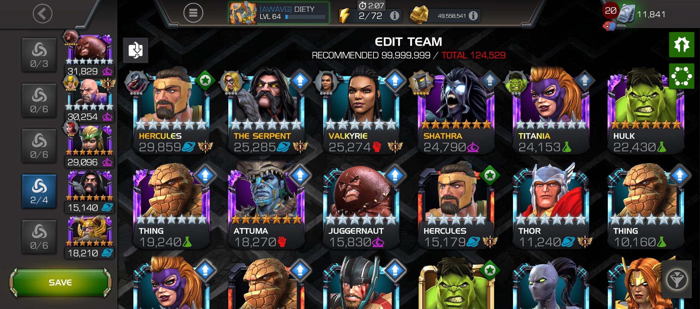 You need abs man for cosmics and hulk/titania for wiccan.
