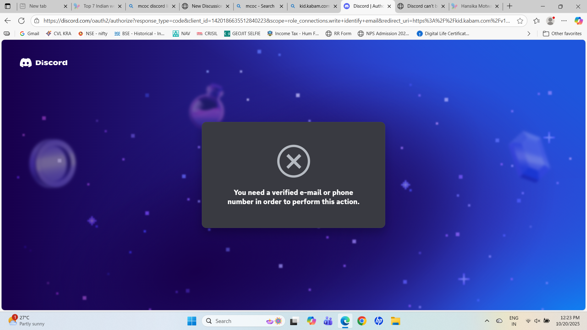 Unable to verify my email or phone number to discord account