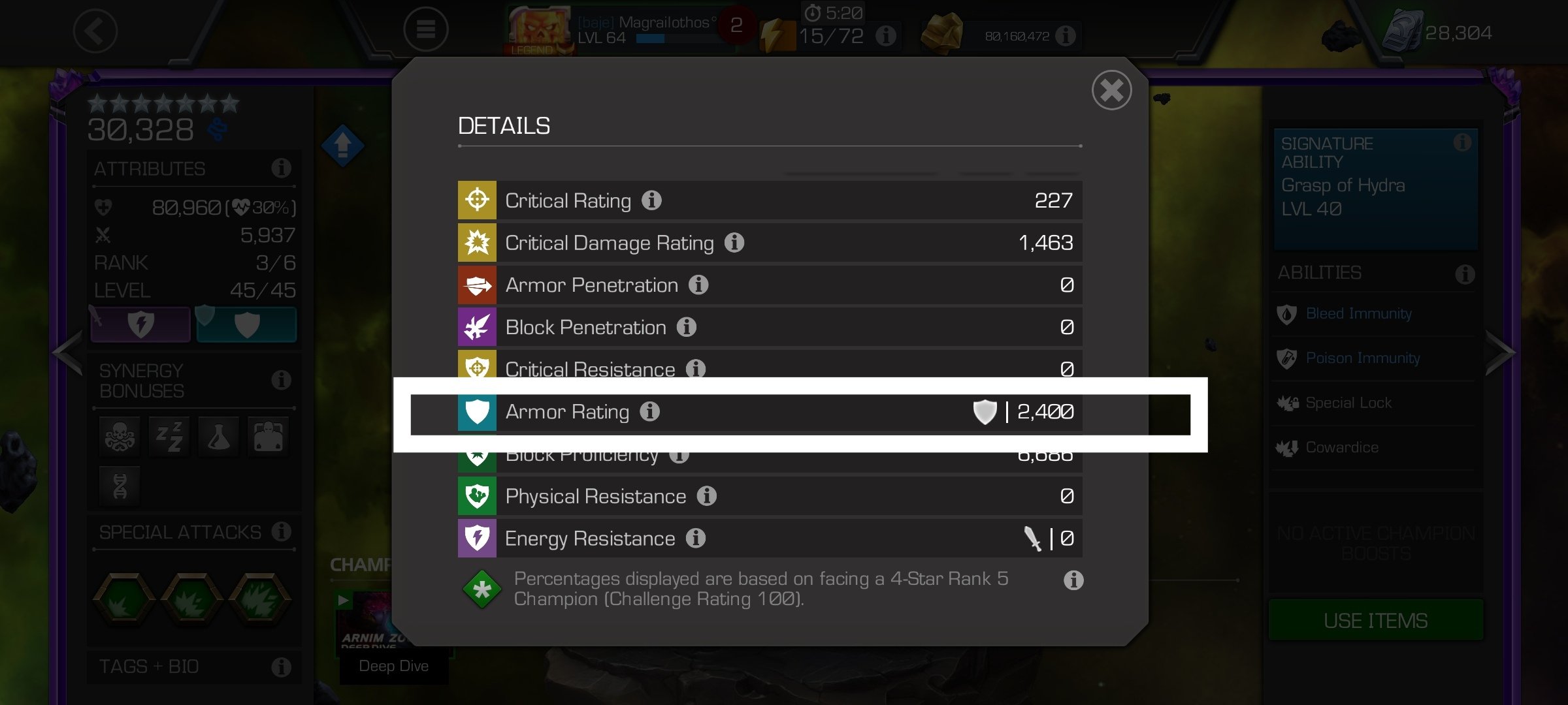 Remember, buffs can be Nullified or Punished - in fact they're more often a weakness than a strength. Aside from fighting a few Mutants, like Havok, they're less helpful than you might think. Arnim is massively armoured; it's just not Armour that can be easily removed by a Mystic or Cosmic opponent.