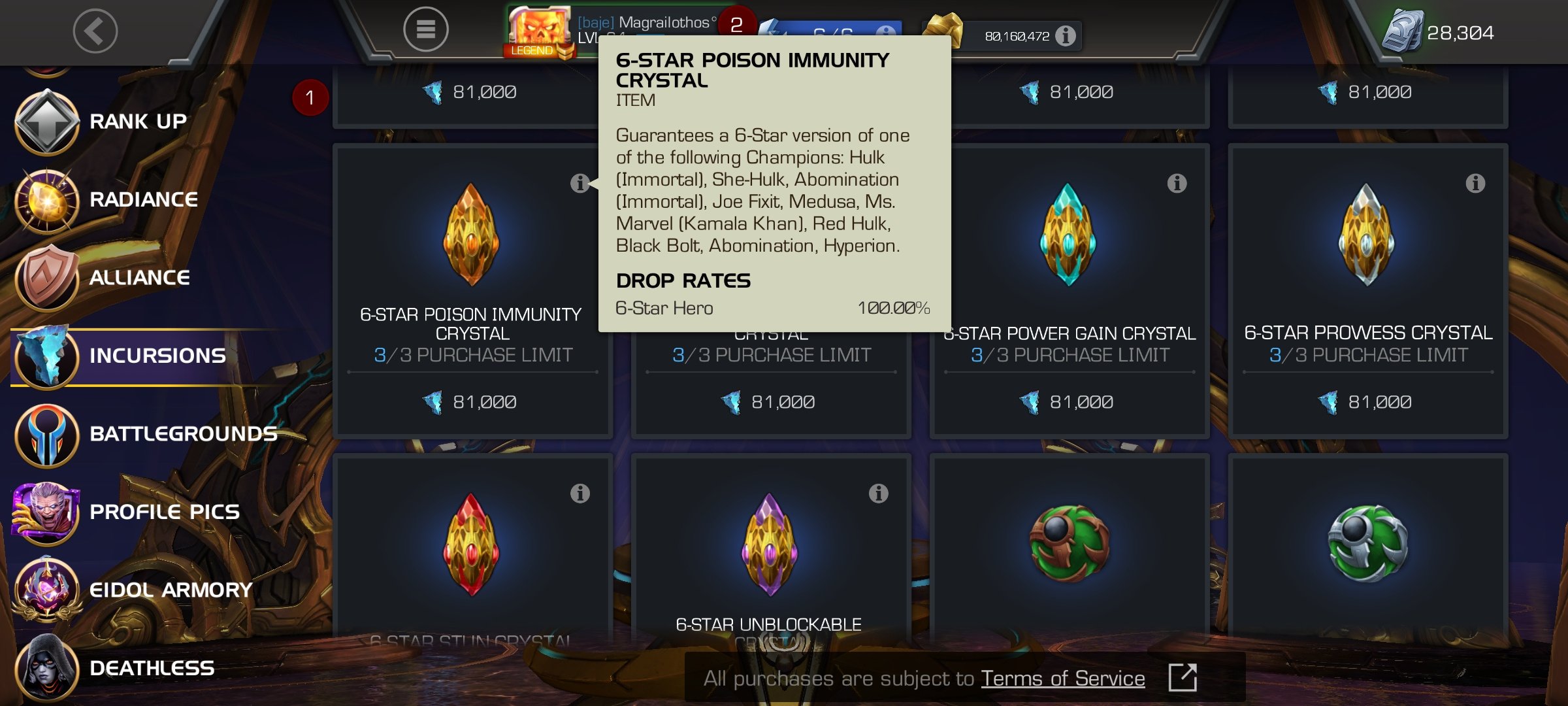 As a 6*, your best options are a Science/Mystic dual crystal, or the 6* Incursions Poison Immunity crystal: