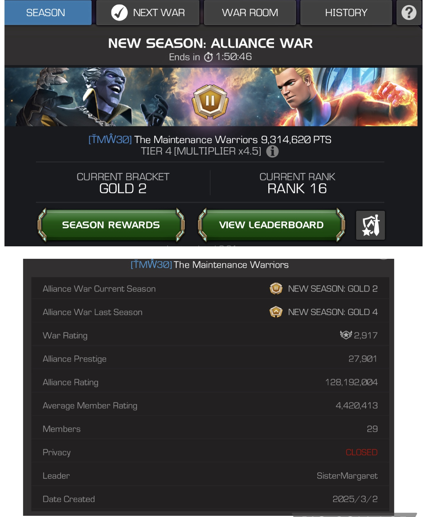 https://forums.playcontestofchampions.com/en/discussion/406170/lf1-high-gold-2-alliance-nm-raids
