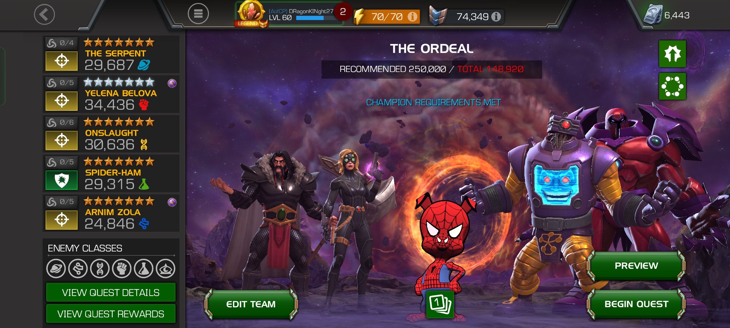 You'll need someone for kilmonger. The fight is not fun with onslaught and you don't need to bring yelena. You really just need onslaught, serpent, a tech, and a science