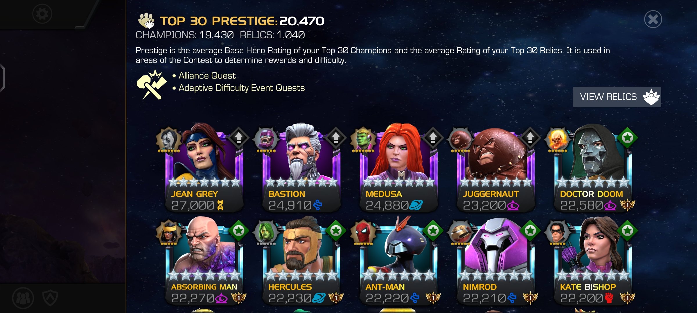 I manually calculated the avg base hero rating of my top 30 roasters and it was around 21400... And in game it's showing me 19430.... I did same with relic top 30 avg and it was matching same figure as it is showing in game