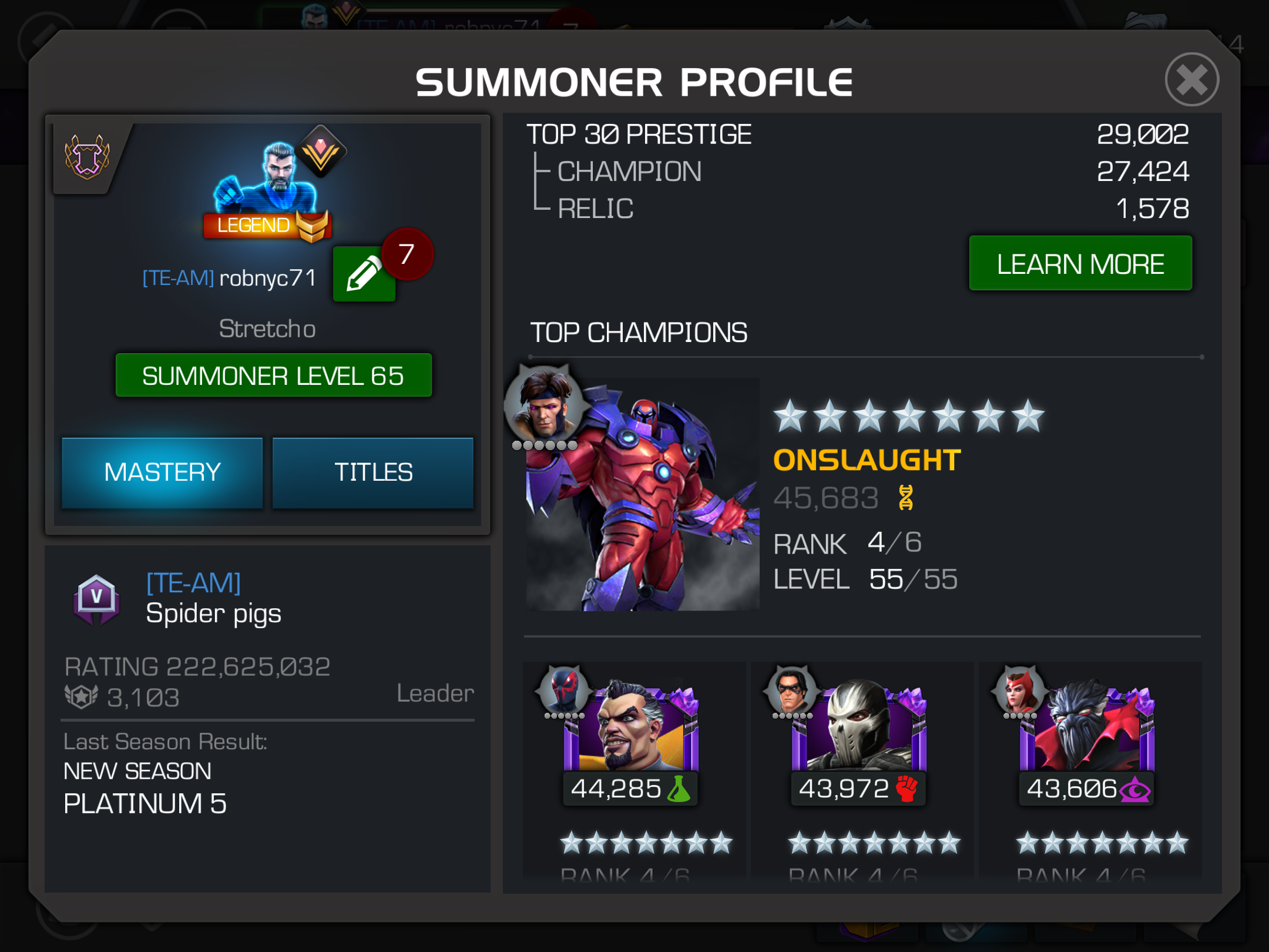 Map 8 AQ, Raids, plat 5 War and 200k Battlegrounds minimum. Great group of long time players, happy to help coach someone on the rise. In game and Line robnyc71, alliance The Spider-Pigs!