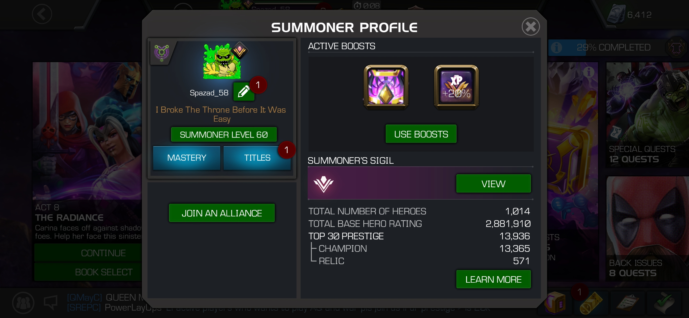 Came back from a 2yr break. Looking for an alliance that doesn't do compulsory aw but does other alliance events. Current progression is paragon, doing act 8.2 now.