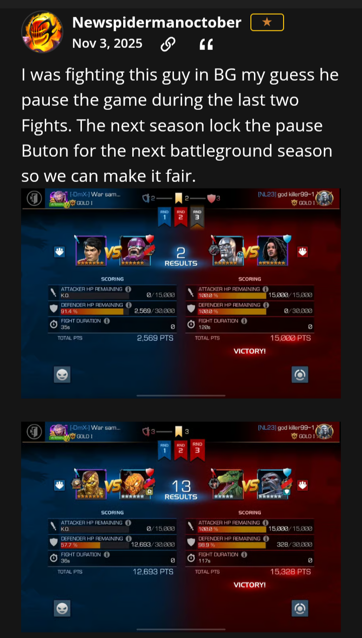 https://forums.playcontestofchampions.com/en/discussion/406386/cheating@Newspidermanoctober