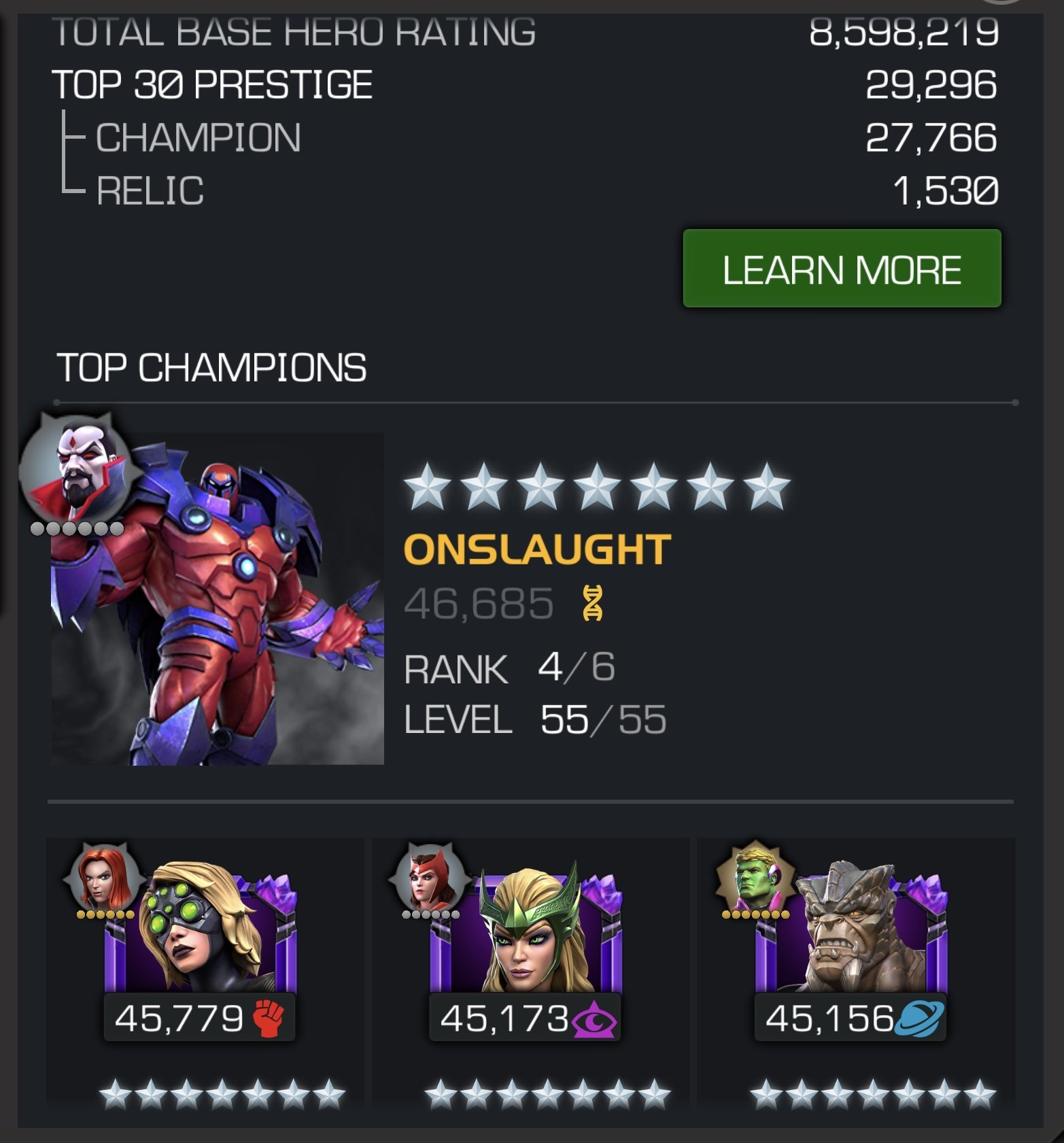 I don’t mind AQ, but I’m tired of everything else. The rewards from AW, BGs, and (N)Raids aren’t worth the effort to me right now, Do you need one more for the Incursions event? All of the champs in my profile are R4 Sig 200. If interested, please leave contact info if you have a spot… I will reach out.