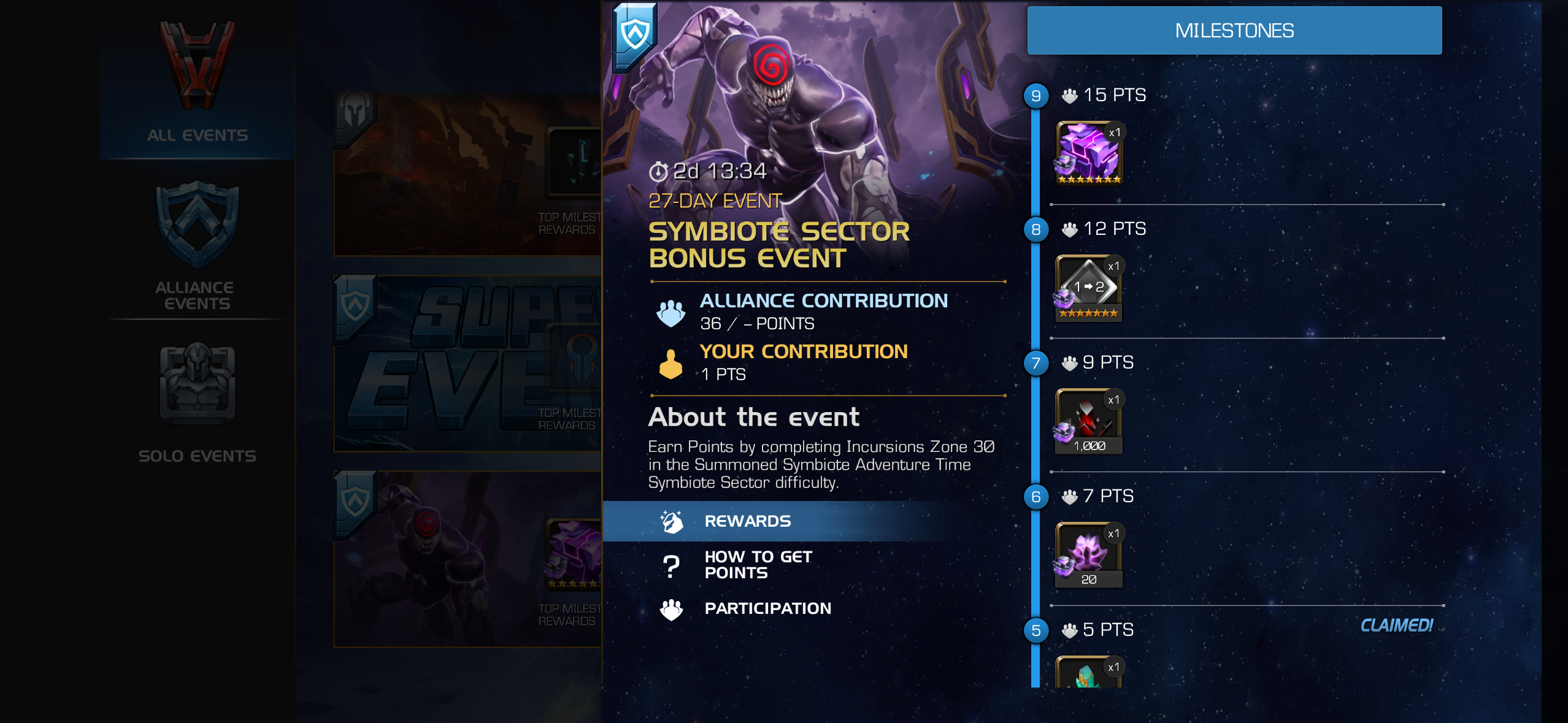 I cant even claim rewards that are earned after I joined. I completed it once before joining and and again after I changed alliances and still can't claim anything. I should atleast get the reward for 2 points since I cleared it twice. Pretty whack.
