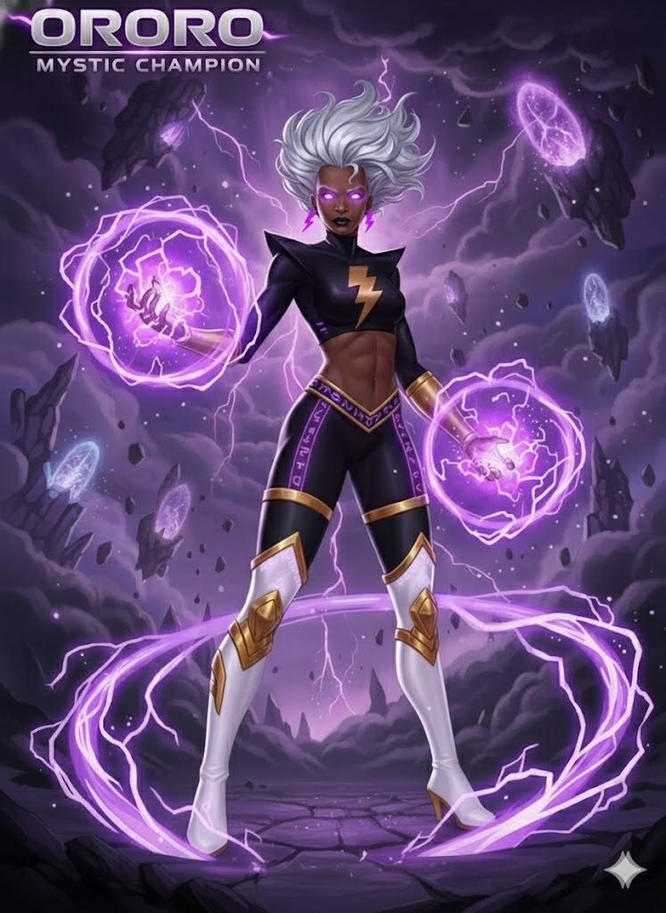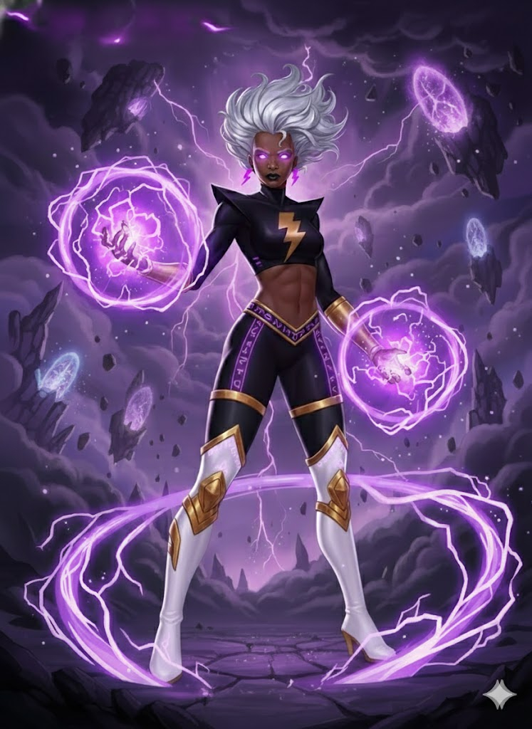 Ororo Munroe's destiny took an unimaginable turn after being resurrected as the Herald of Eternity. The sheer power threatened to consume her, but through an indomitable force of will and an innate connection to the primal energies of existence, she managed to expel the cosmic titan. This harrowing experience did not leave her unscathed; it fundamentally rewrote her very being. She now stands as a living conduit to a nascent cosmic phenomenon, dawning her previously untapped mythical abilities.