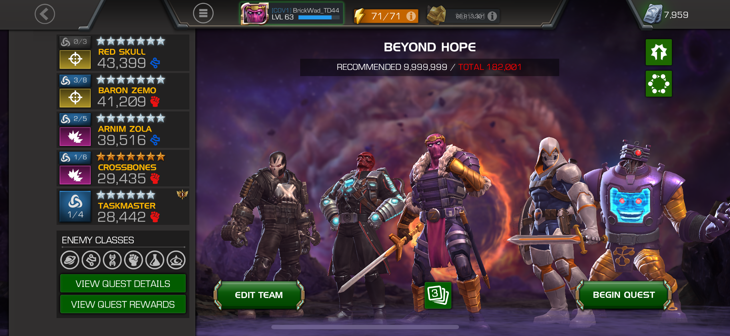 I would love for Kabam to release Taskmaster as a 7*. I’ve been waiting a while, and he’s one of my favorite champs. After watching beat the boss I just wanted him as a 7* even more. I thought it would’ve been cool if they gave Dylan the first 7* Taskmaster for winning since he said he was his favorite champ.