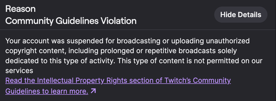 Don't post misinformation. Dave literally shared a screenshot of the message we got from Twitch.