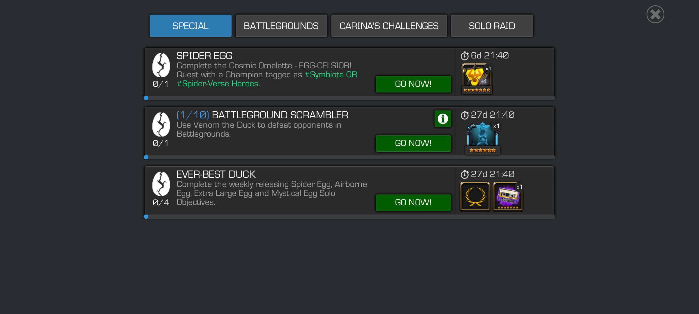 I just redo it with Venom the Duck and finally got the objective.