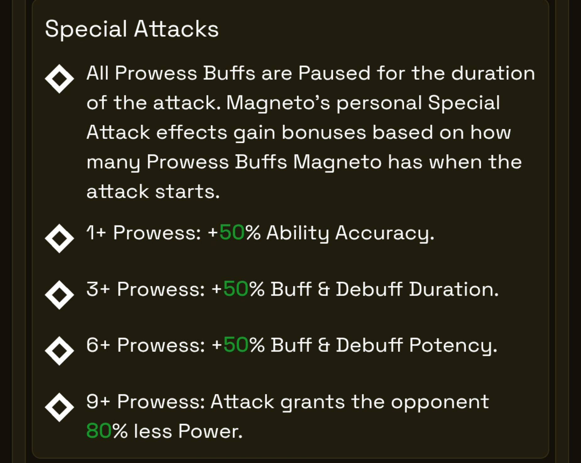Special 3 changed to a 800 potency Precision that pauses all Prowess while active