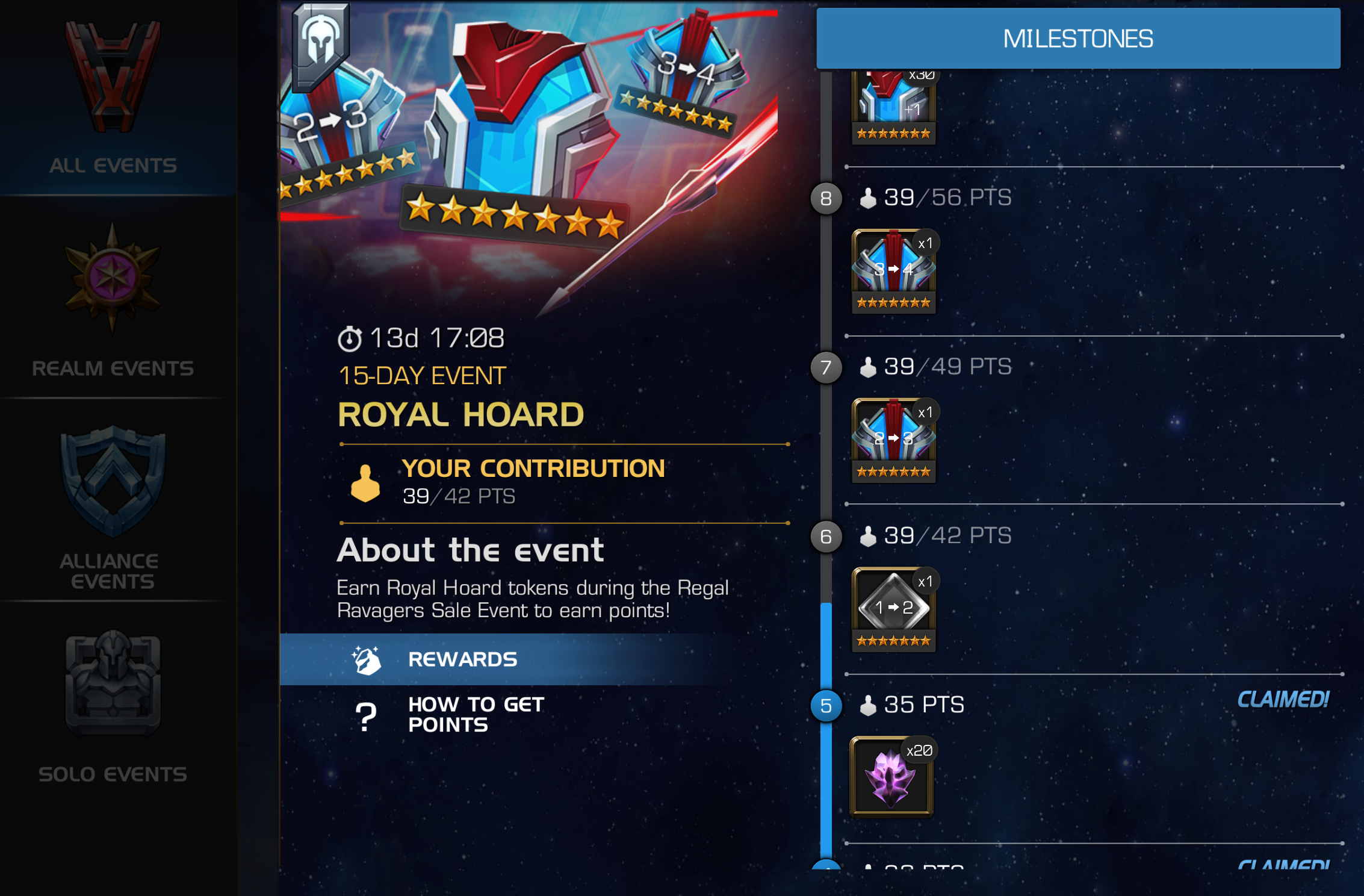 I am not sure if my Royal Hoard tracker is accurate? I have spent $600 in the online store and I am only at 39 points. I also spent units. I watched a seatin video and he bought some Odins and he collected all kinds of stuff from this milestone?