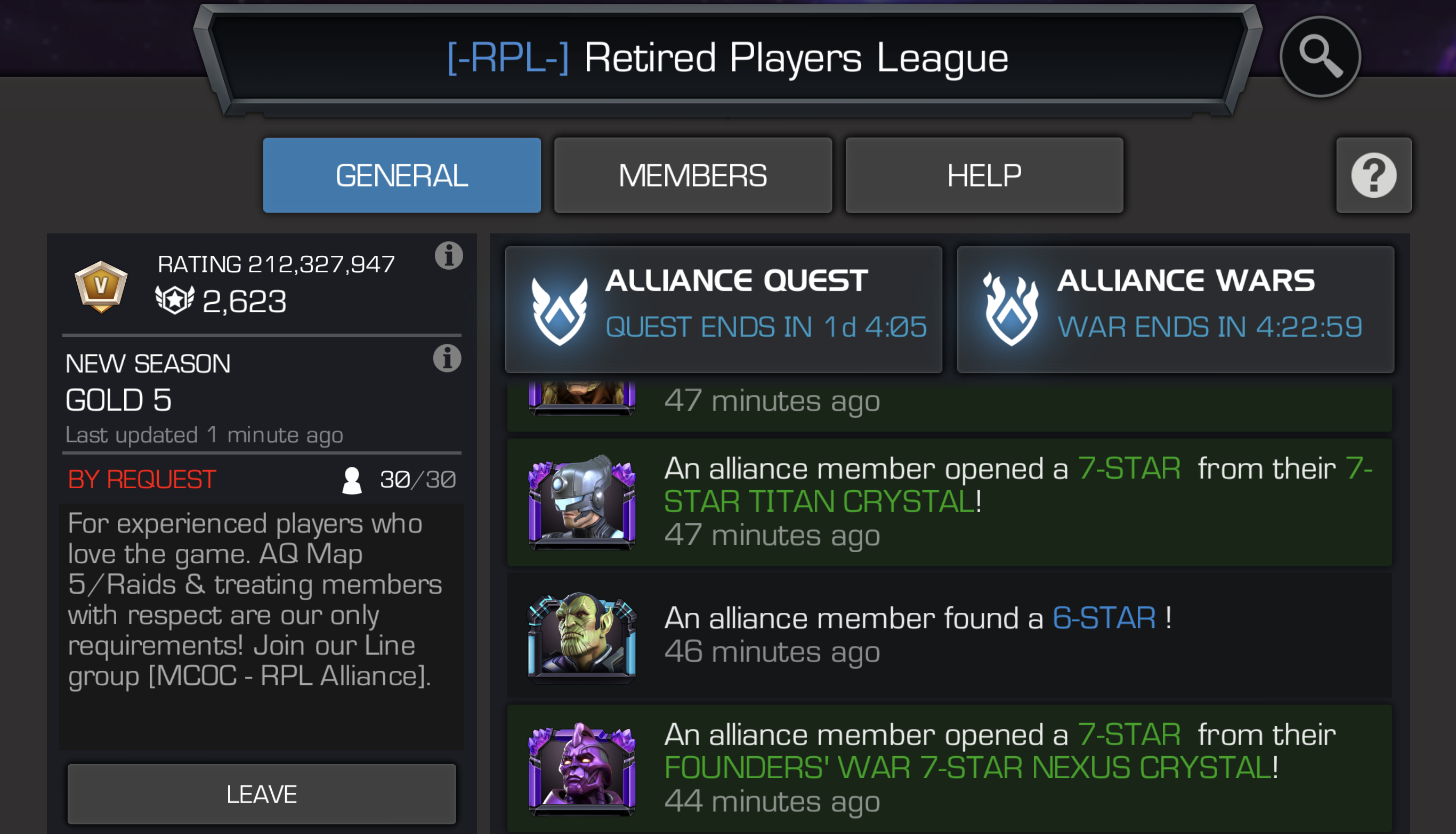 Our alliance is a good way to concentrate on game content that you like, earn alliance rewards, while building your roster and helping with alliance events.