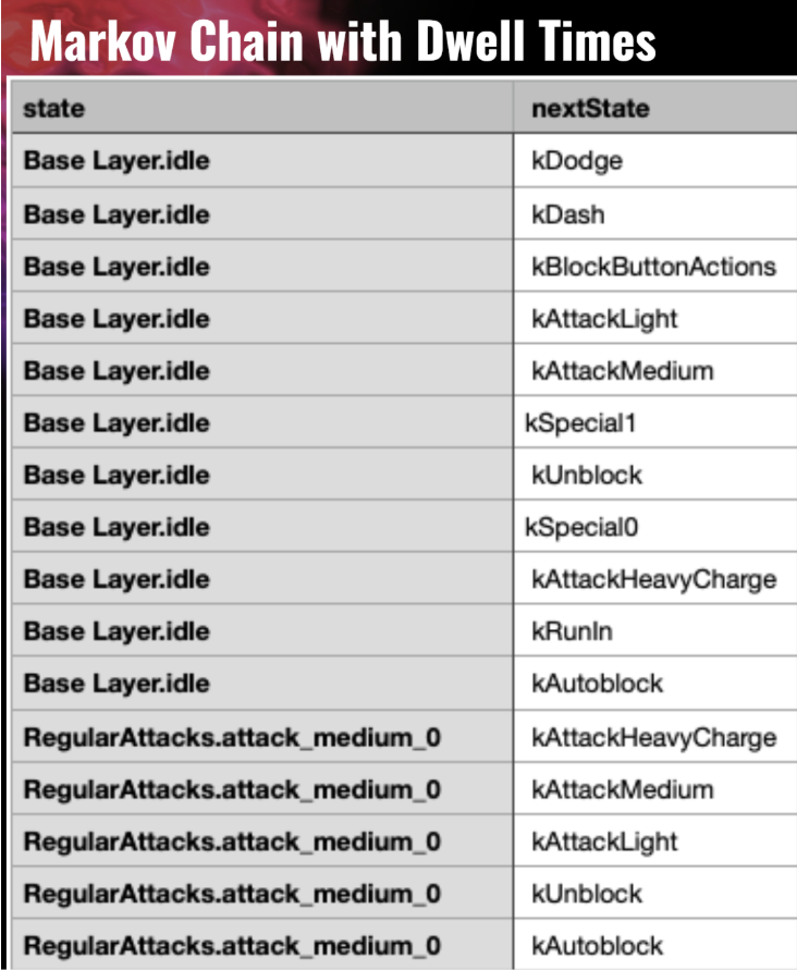 Our current AI is just a frame perfect button masher. There is no real intelligence behind why it chooses to do something; it’s just using weighted-random rolls to mash buttons until it finds a valid input, and it has no ability to learn. This also means that most “behaviors” players experience are an emergent property of its many weighted die rolls, rather than something that was intentionally designed. And if those behaviors weren’t intentionally designed, then they are functionally impossible to edit without wide-reaching consequences, which is why we started building something new.