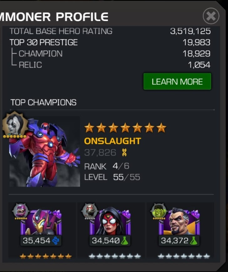 Have more than 20k units saved for the banquet, so will increase the prestige over the next month or so. Have 7 titans and over 20 basic 7* crystals saved for after the rollover, in the hope to get some of the good champs.