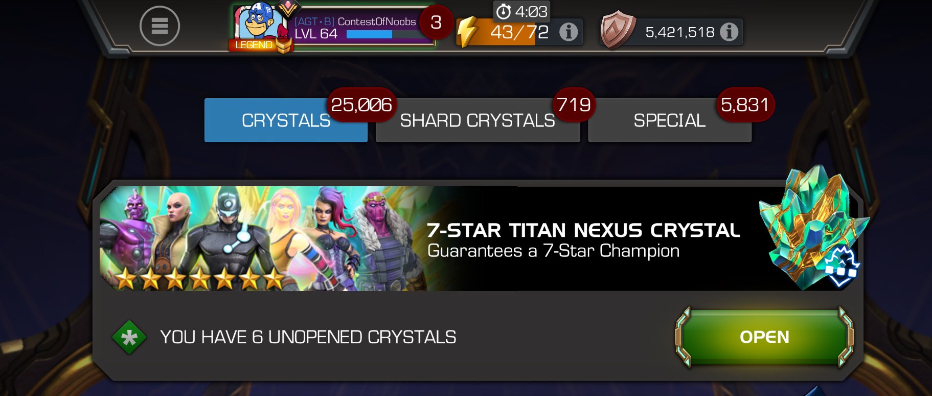 Looking forward to hoarding my crystals for 7* Blue Marvel in the titan crystal and rest of 2026 mcoc champions.
