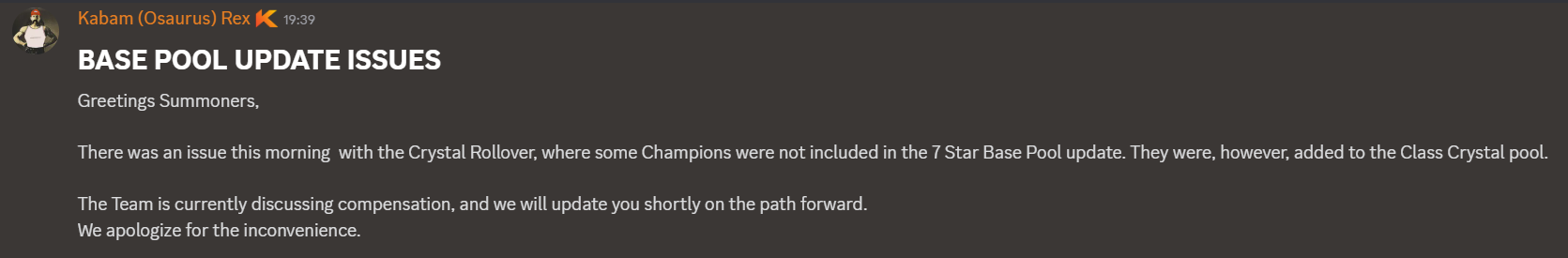 Did the 7 basepool update yet?