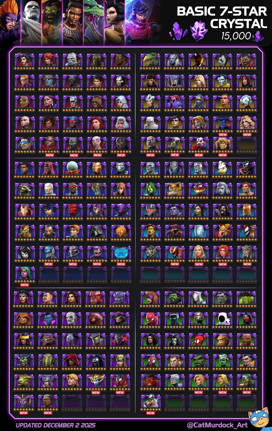 Opened a few 7* crystals and I didn't see a single new champion appear in the real. No Captain Marvel Movie, Mr Sinister, Carnage, etc.
