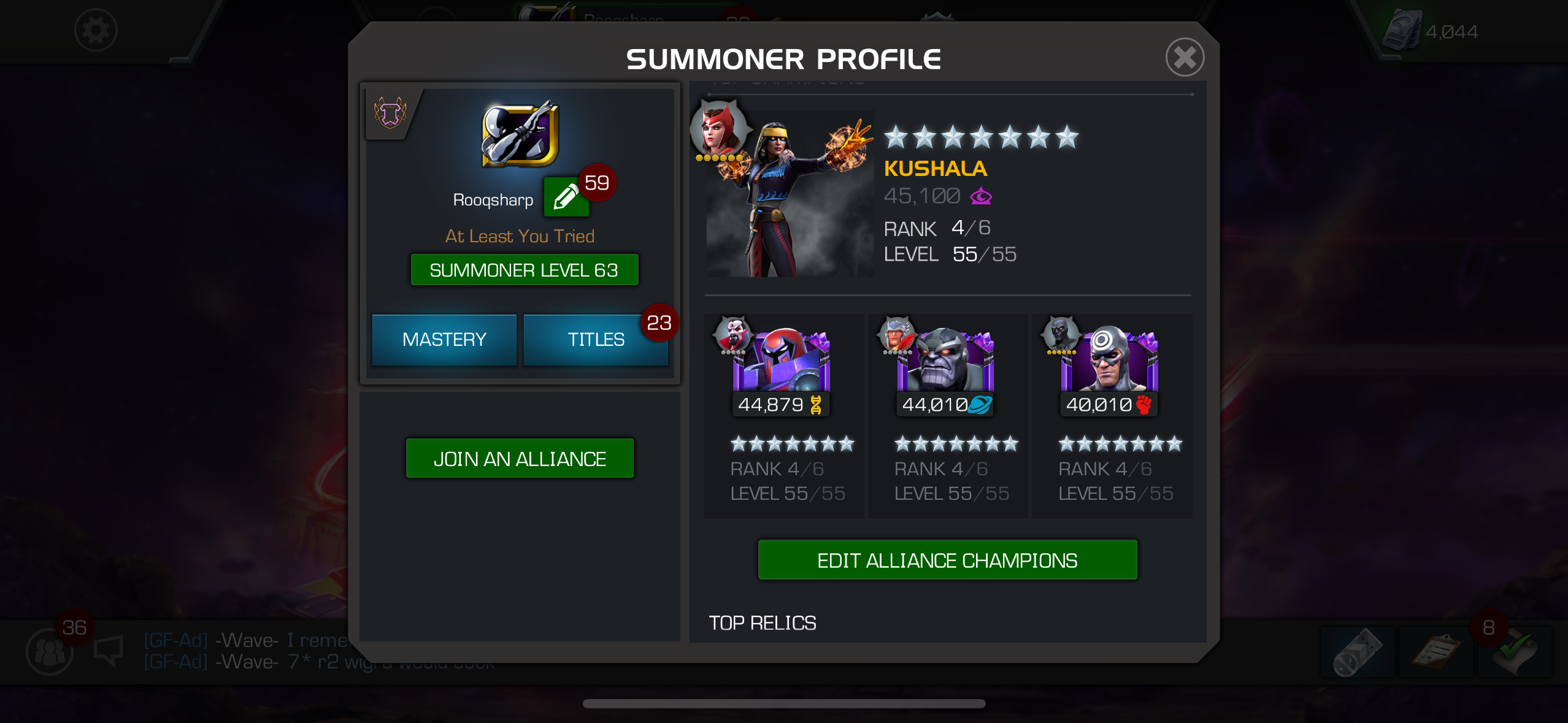 Hey I’m just looking for a new alliance. Discord is preferred. I love playing bg and war and I’m definitely looking at spending for the banquet event