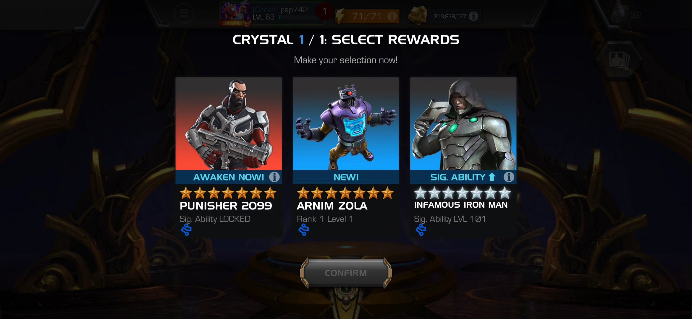 pick up Arnim Zola (didn't get him from the Arnim Zola or Titan Crystal compensation).