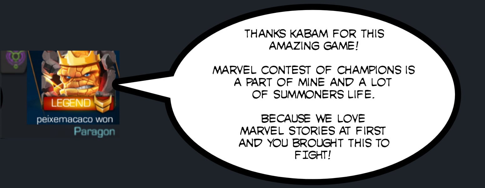 Now, if someone with a good heart say nice words to Kabam Staff and to our Marvel Contest of Champions game it will be great.