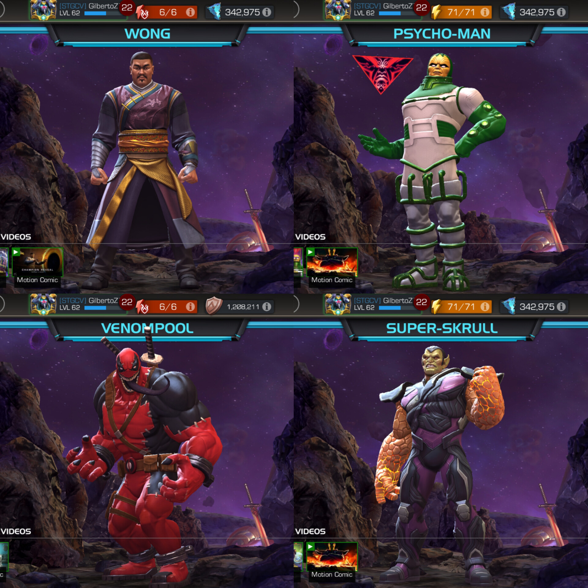 My Tacticians, Psycho Man for the extra buffs for more furies and his rage box would make you ramp very fast, Super Skrull would benefit from Vicious and Unparalleled buffs, Venompool same thing and i think Wong already showed up in previous rotations