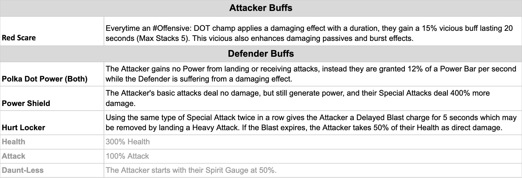 (These buffs apply during the Pre-Season and Weeks 3-4 of the Gladiator Circuit.)