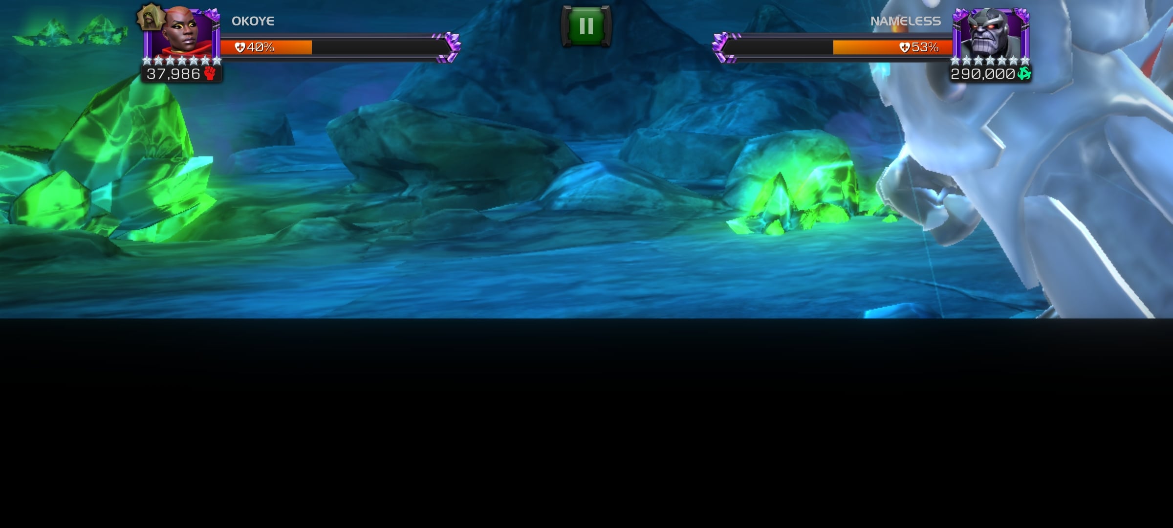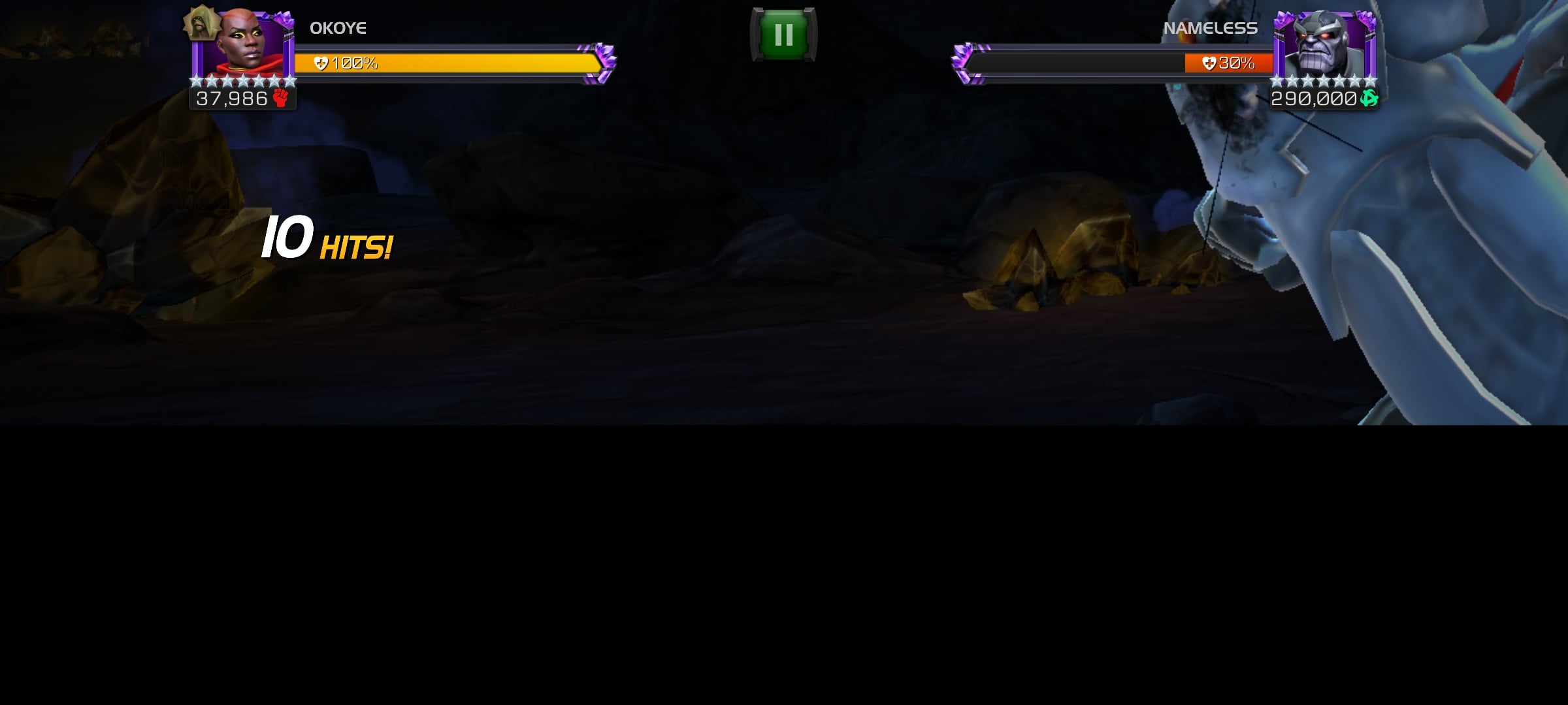 This is how my fight with ordeal Thanos went. Begins the fight with this screen and the boom he hits me from nowhere. Sometimes the entire fights itself happens around the same screen. If you see the first screen shot I somehow managed to do 10 hits without seeing where he is. What's happening kabam.? Because of this I wasted so many revives and health potions. I restarted the game more than 2 to 3 times and the same bug keeps coming back.
