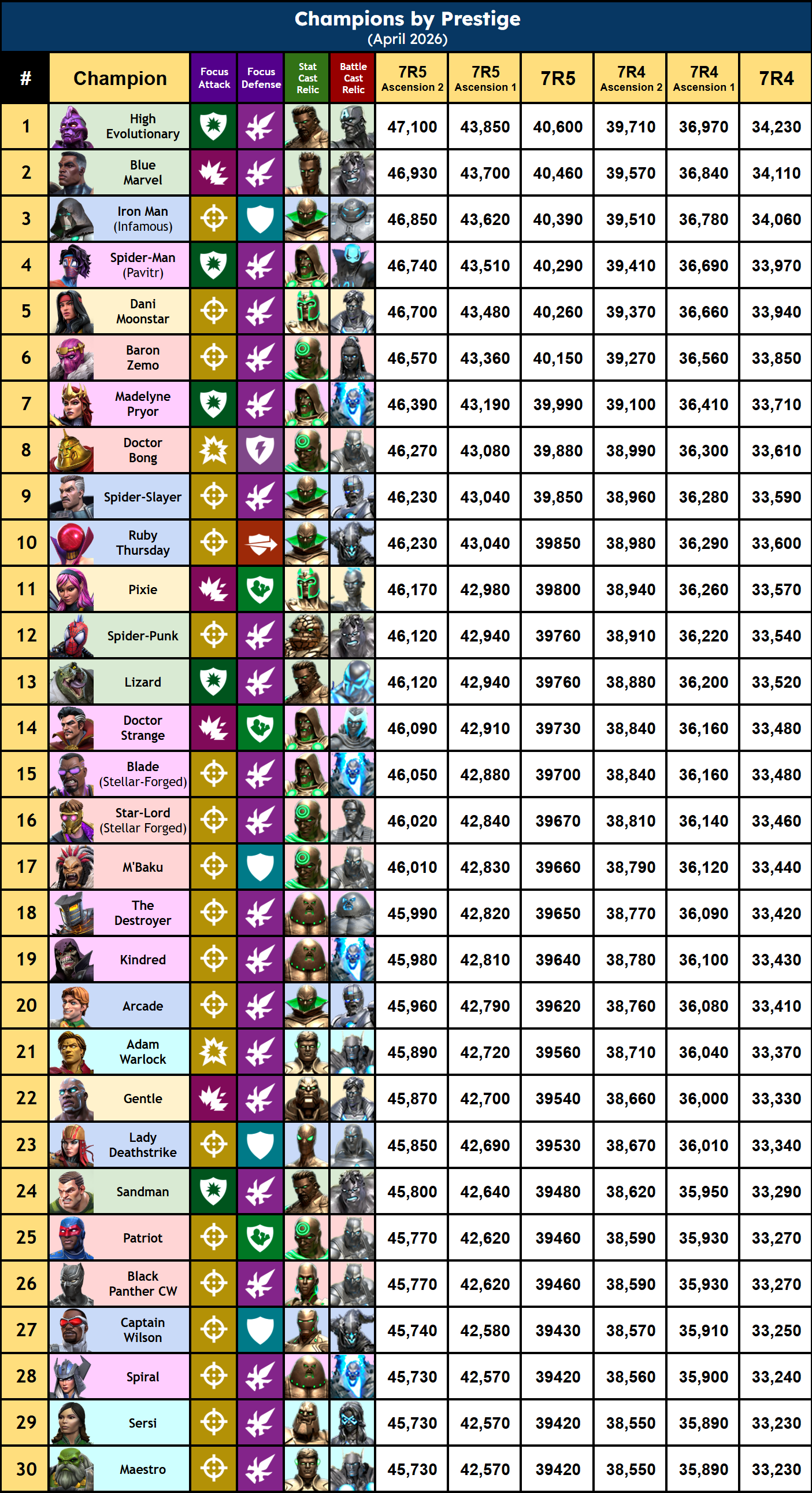 👉🏻 All Champions by Prestige + Stat Focus + Relic