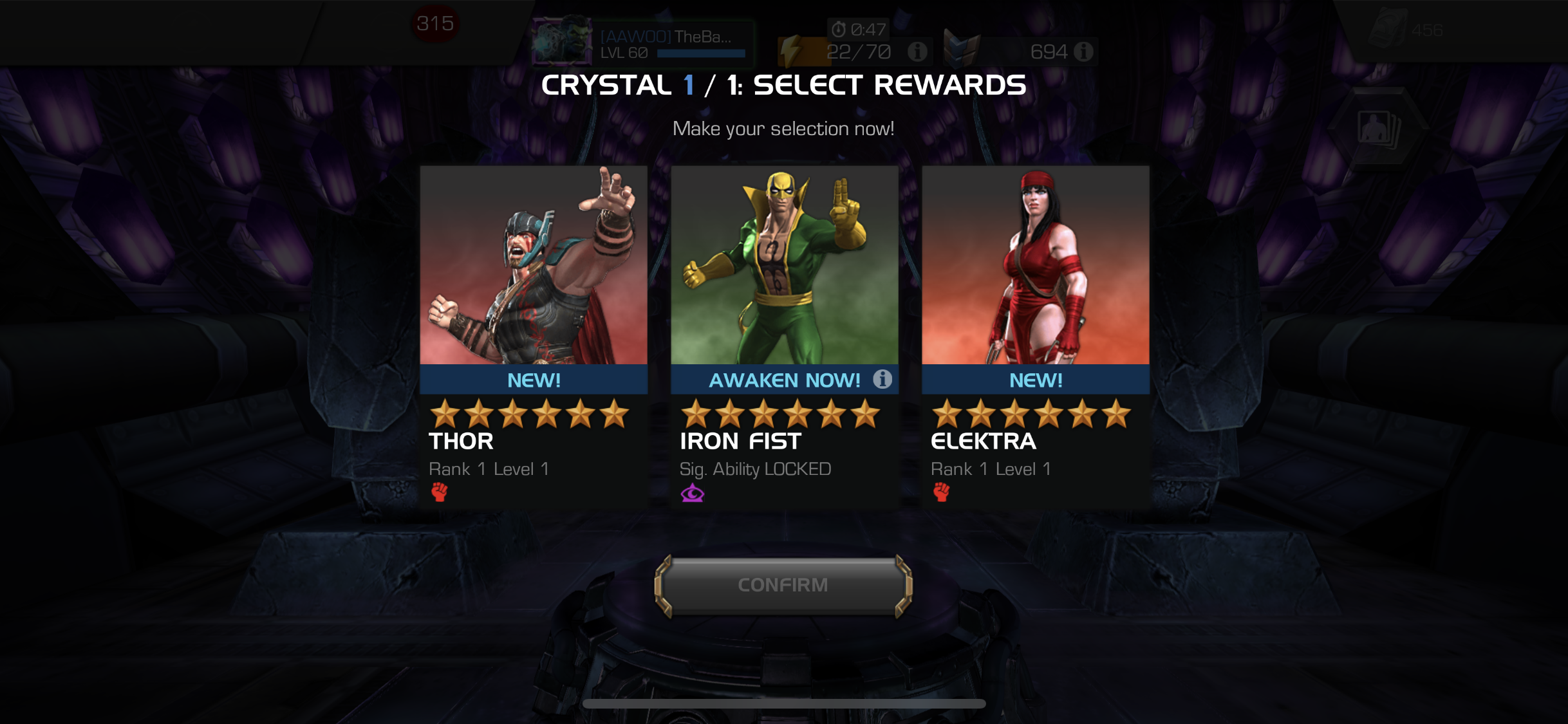12:45: Opened my 6* Nexus and a 6* Crystal. Crystal gave me Blue Cyclops. This was the nexus: