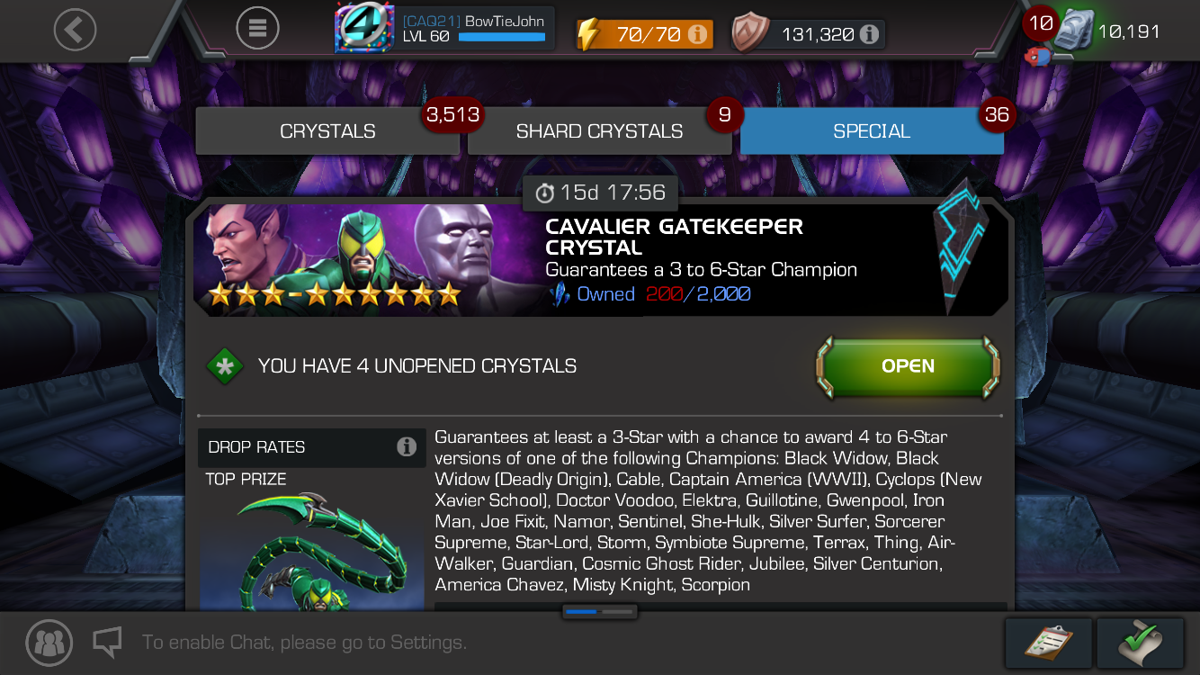 After the Galan wonderland objective for Weeks 1 -4 I decided to open the four crystals earned to see if I could get one of the champions I needed for Week 5 Objectives as either a 5* or 6*. Those champions I was looking for as a 5* or 6* were as follows: America Chavez, Jubilee, Misty Knight, and Scorpion.