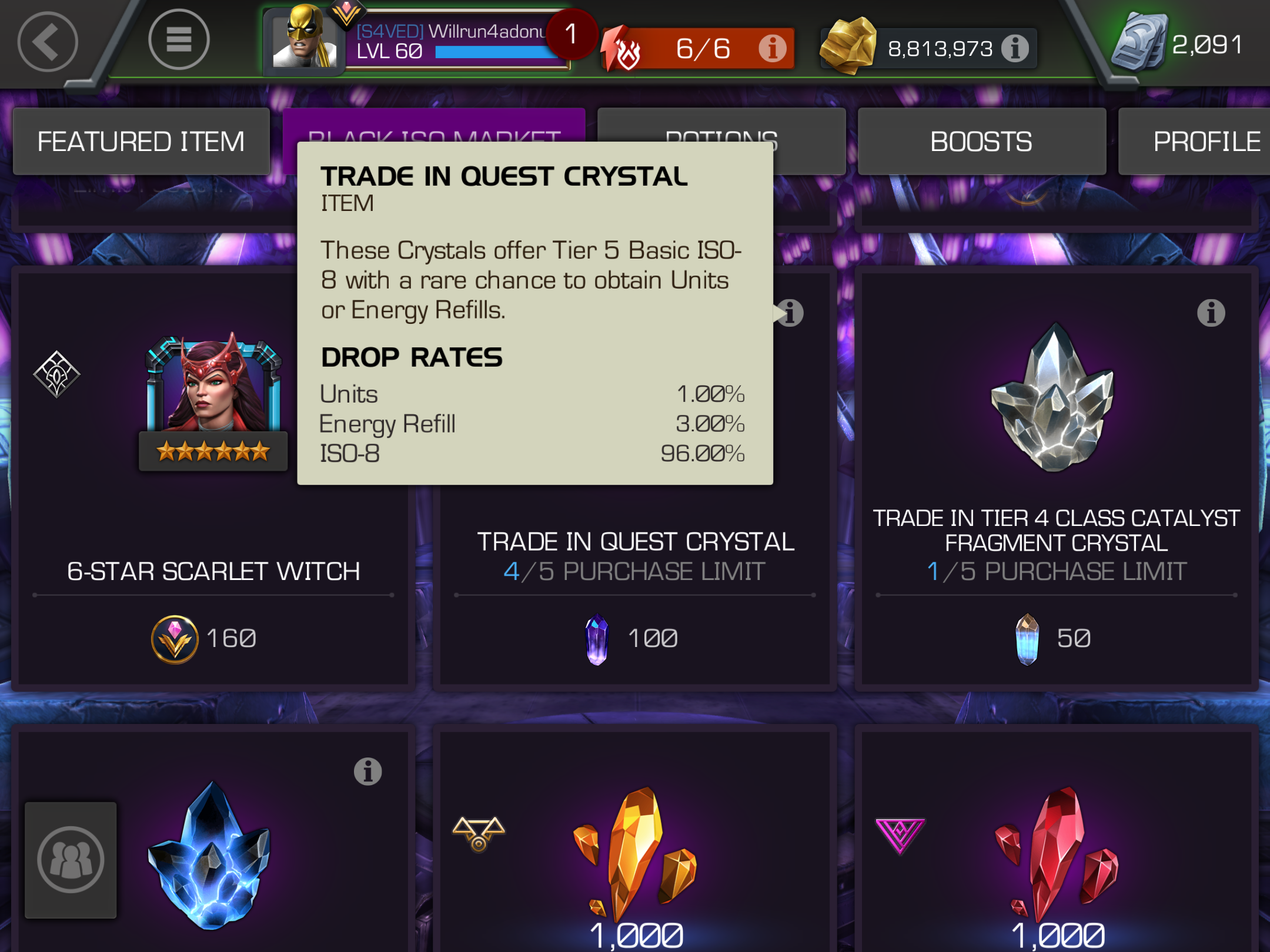 I normally just buy the trade in crystal to clear out my quest crystals and get those red numbers down. Gotten energy once. Wasn’t expecting the other prize to be this much. Pretty nice Kabam.