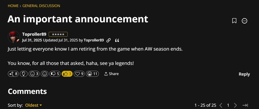 There's already a Thread about Kam quitting. The game isn't dying because a YouTuber quits.