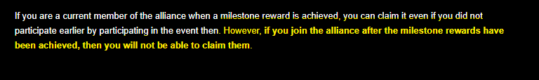 Additionally, you will not qualify for the milestone rewards that were already reached before you join the Alliance.
