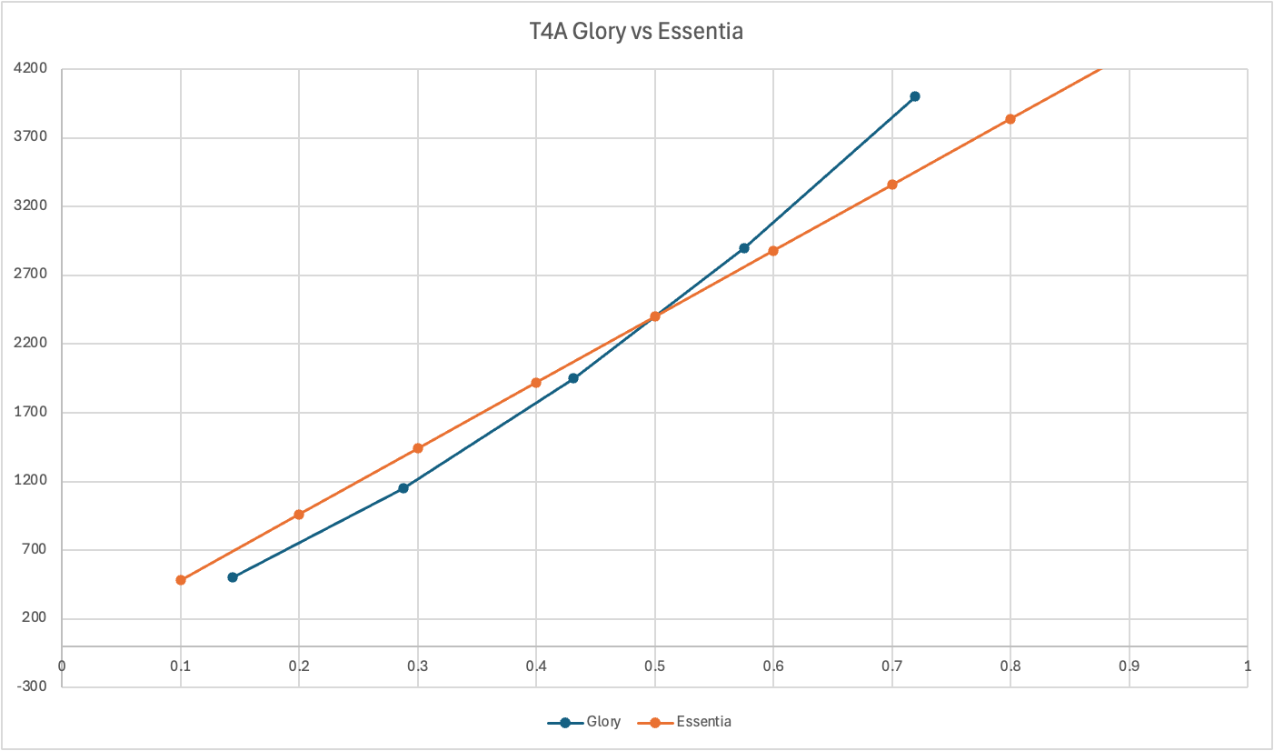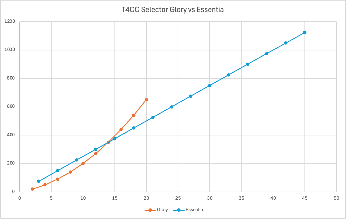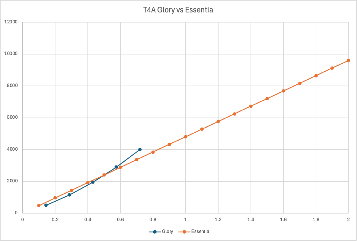 We can also look at overall availability. The Glory store topped out at about 0.72 of a T4A, or 72% of one T4A. The Essentia store allows up to 2 full T4A to be purchased: