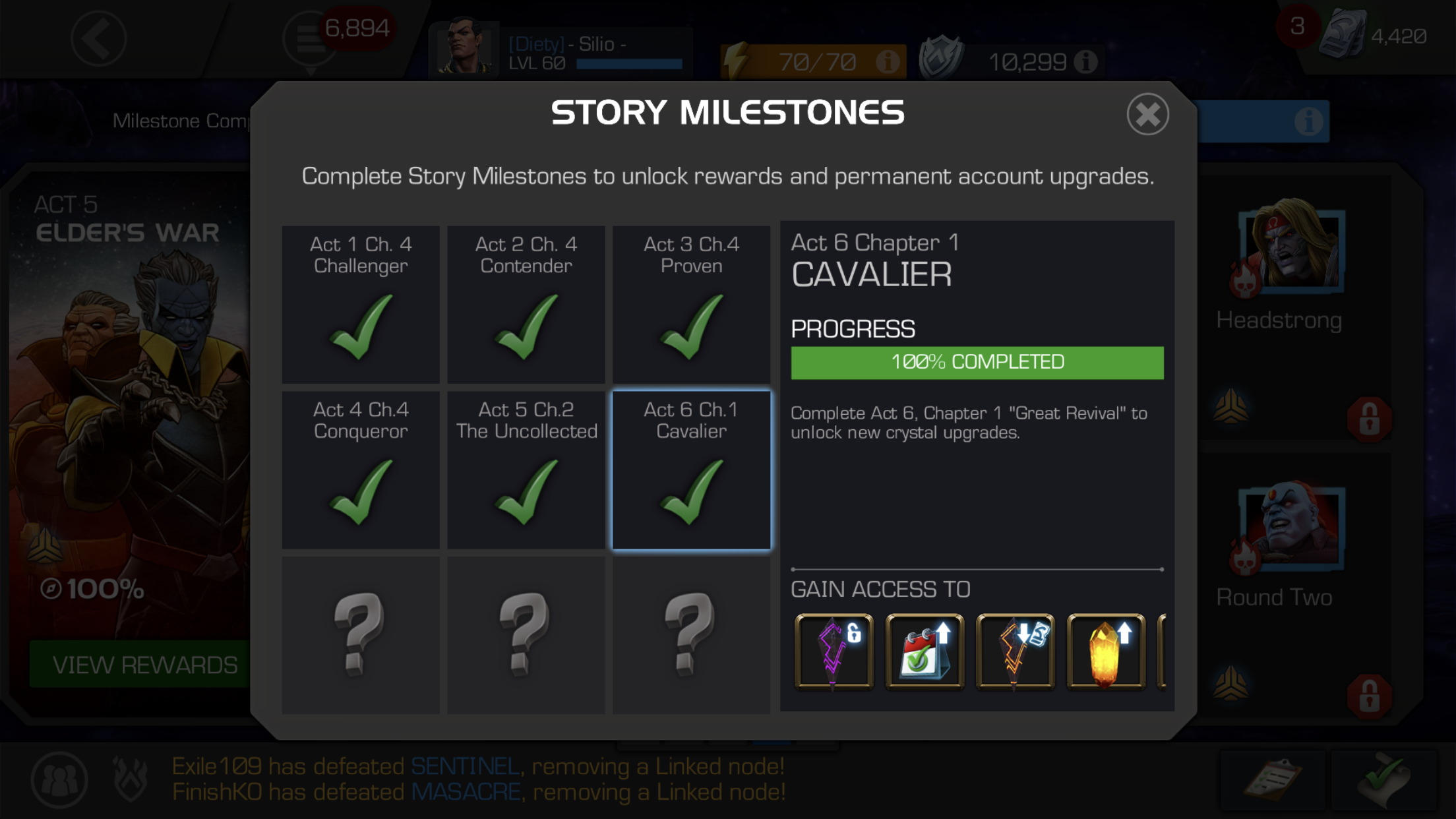I didn’t know how to title this in a short and simple way, but I’ll explain what I mean. Kabam likes to talk about progress - we’ve seen it in the Act 6 gates and in Variant. Progress is nice because you can look forward to the next thing available. However, I including many others, would like to have an increase in level cap. I can’t say for sure Kabam’s reasoning behind it (unless it’s written somewhere on the forum), but I think I might have found a happy compromise.